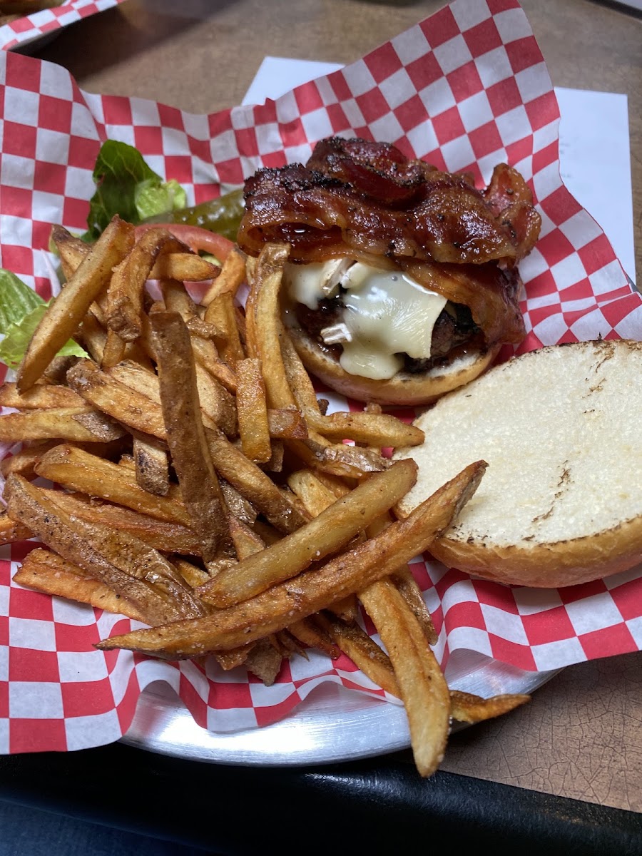 Enjoyed a fantastic burger and fries here. Quality ingredients and cooked super fresh. They took care of our table of 5 with ease. Clean, spacious dining area with sports on TV, dog friendly. Would love to come back and try the beers next time.